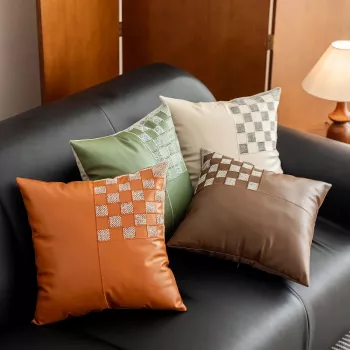 Modern Plaid Leather Stamped Throw Pillow Cover